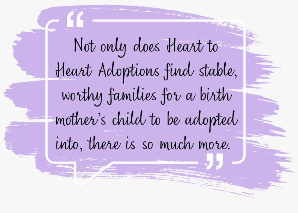 Not only does Heart to Heart Adoptions find stable, worthy families for a birth mother’s child to be adopted into, there is so much more.