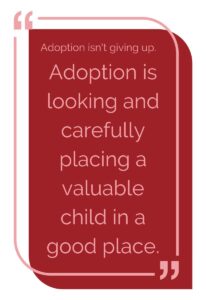 Giving up a baby sounds like walking away from a situation. At Heart to Heart we don’t give up, and we don’t walk away from a situation. We find what is right for you. We find what is right for the baby. Maybe placing your infant for adoption is the right decision. But if you place your baby, you are carefully choosing a safe place for this child. THAT is NOT giving up. That is taking a hard road, a road you have chosen because you don’t give up on things.