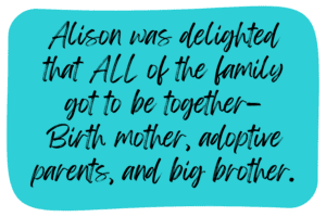 Alison was delighted that ALL of the family got to be together—Birth mother, adoptive parents, and big brother.